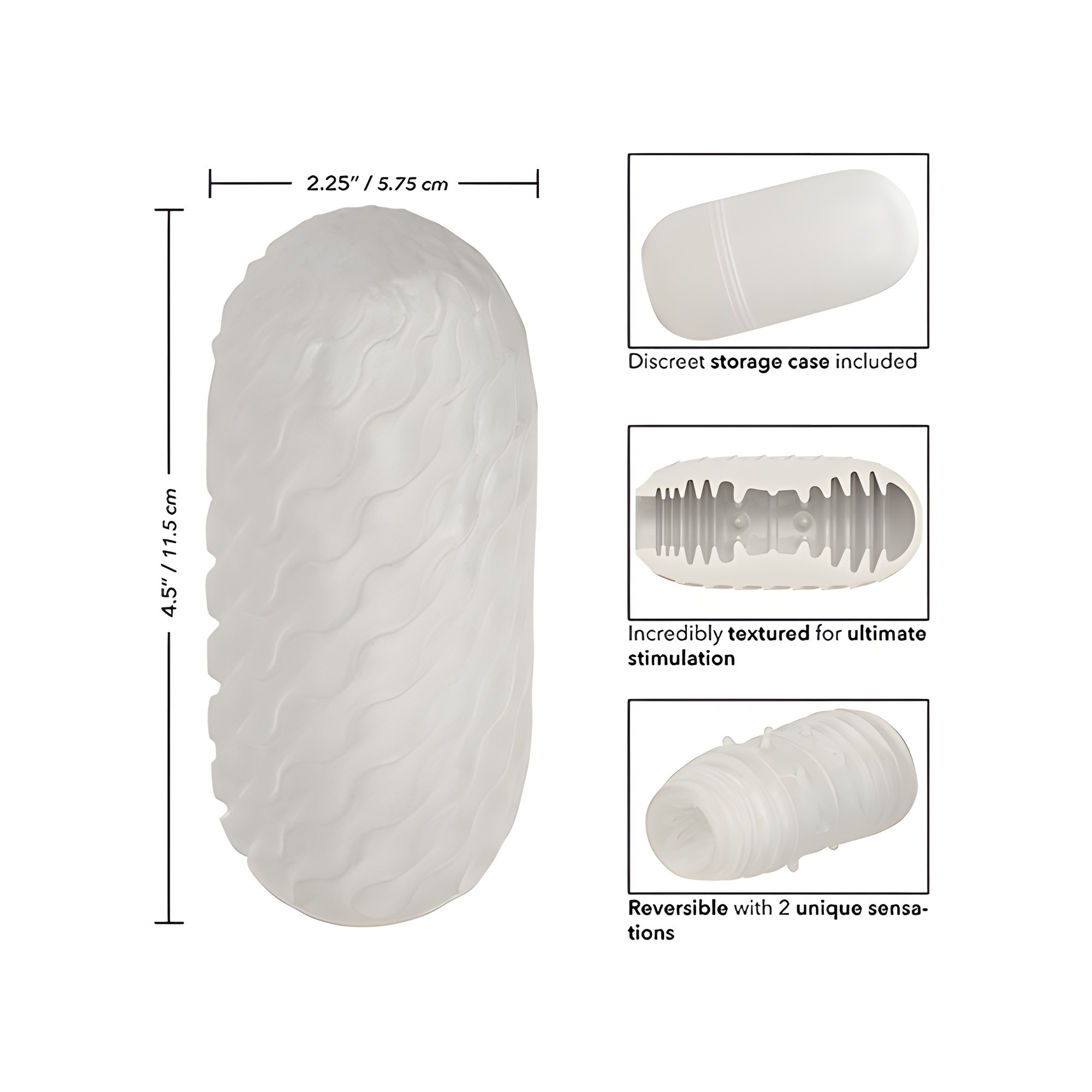 This premium stroker features reversible textured stimulation and a closed-end design for superior suction and pleasure.