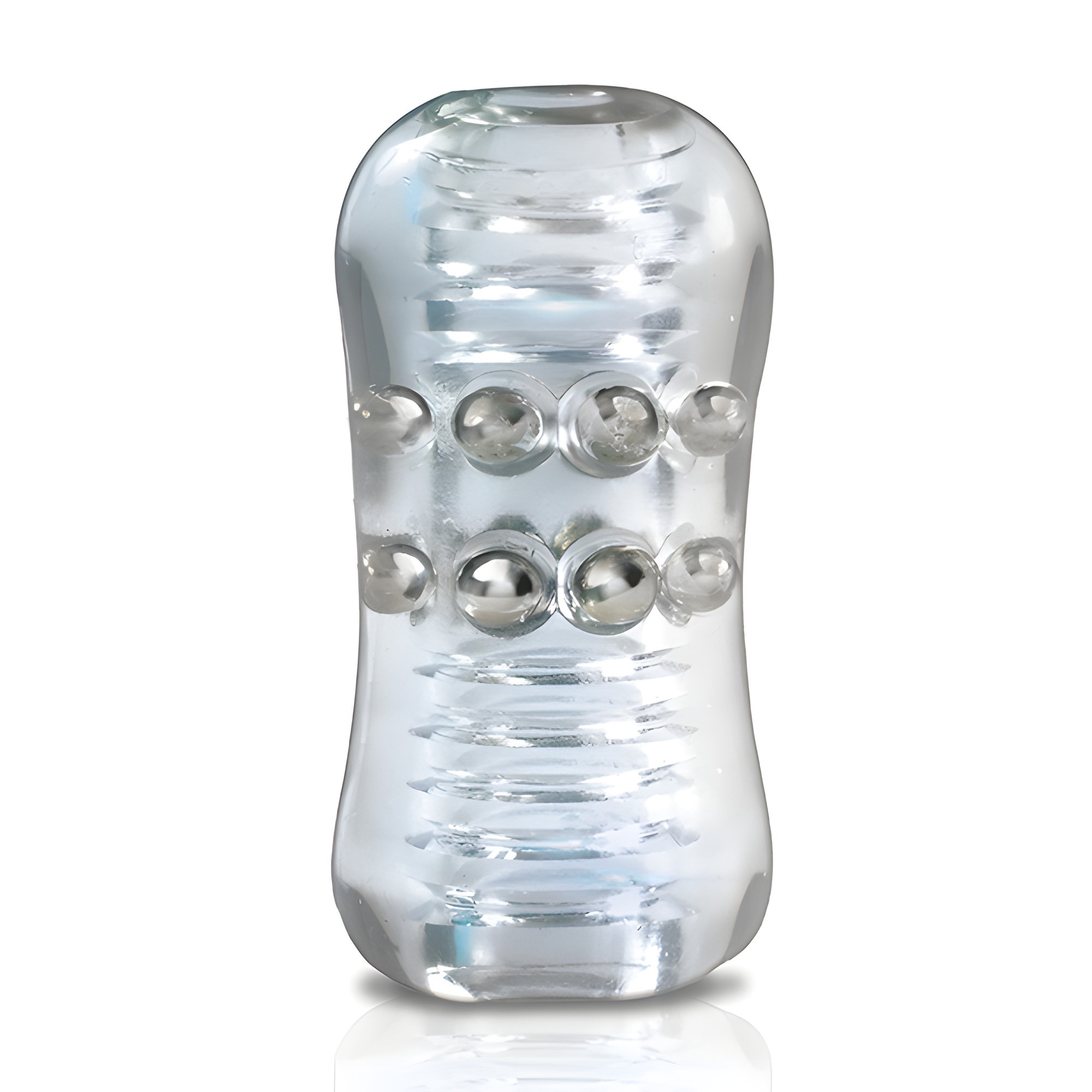 This compact, clear-view stroker features 12 metallic pleasure beads for an exhilarating experience.