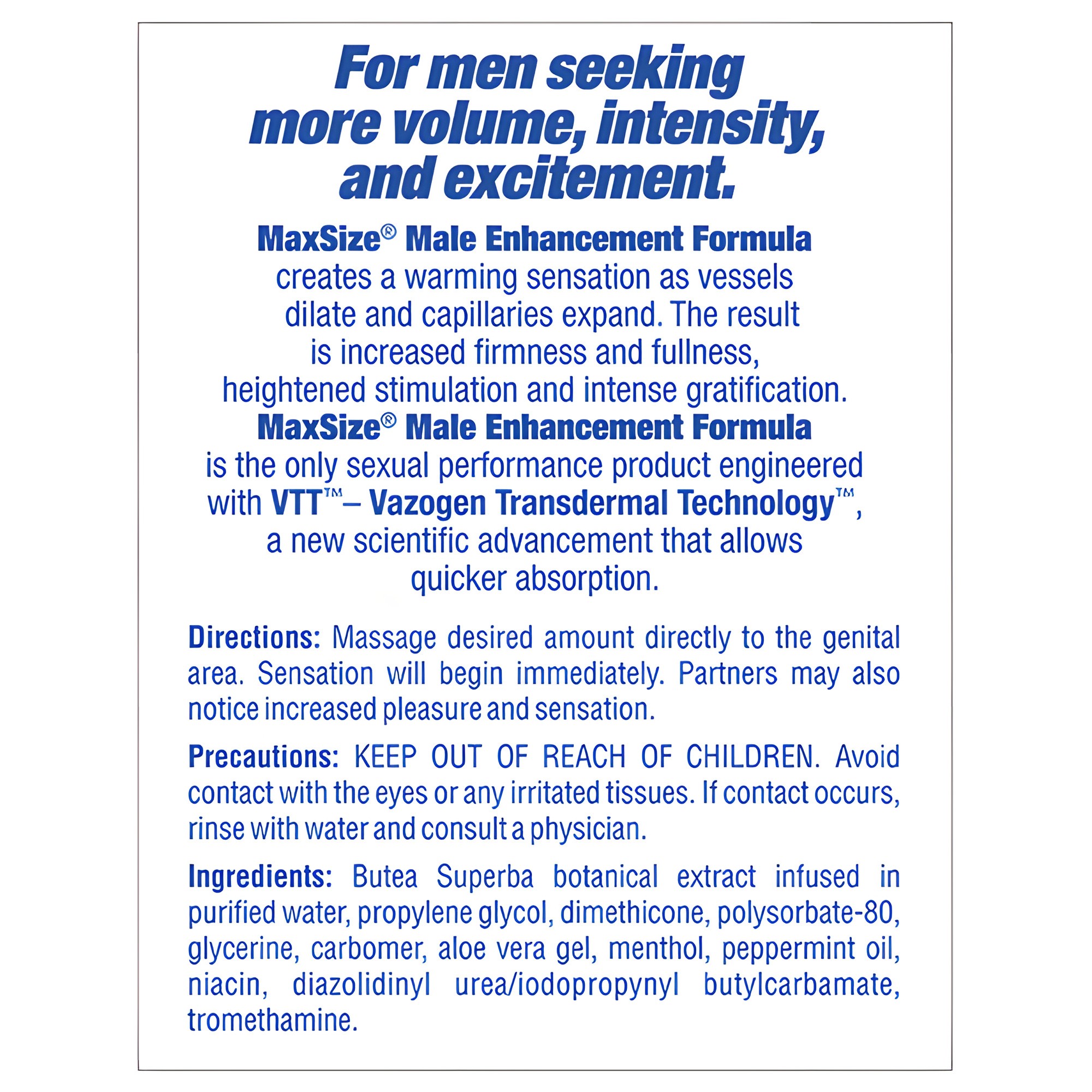 Swiss Navy Max Size Cream provides a unique transdermal delivery system for quick absorption and immediate results.