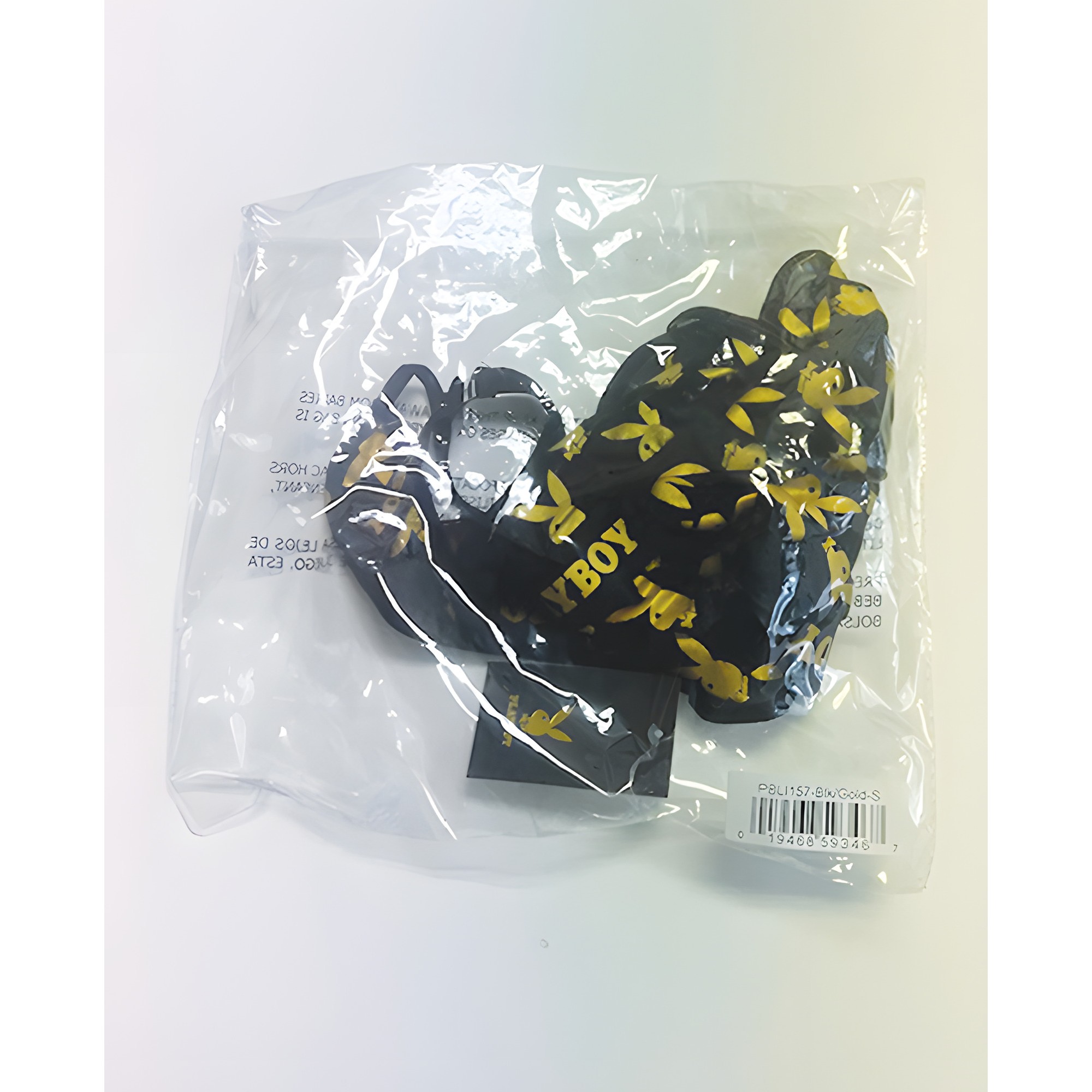 Step into seduction with the Playboy Bunny Gold Foil Halter Teddy.