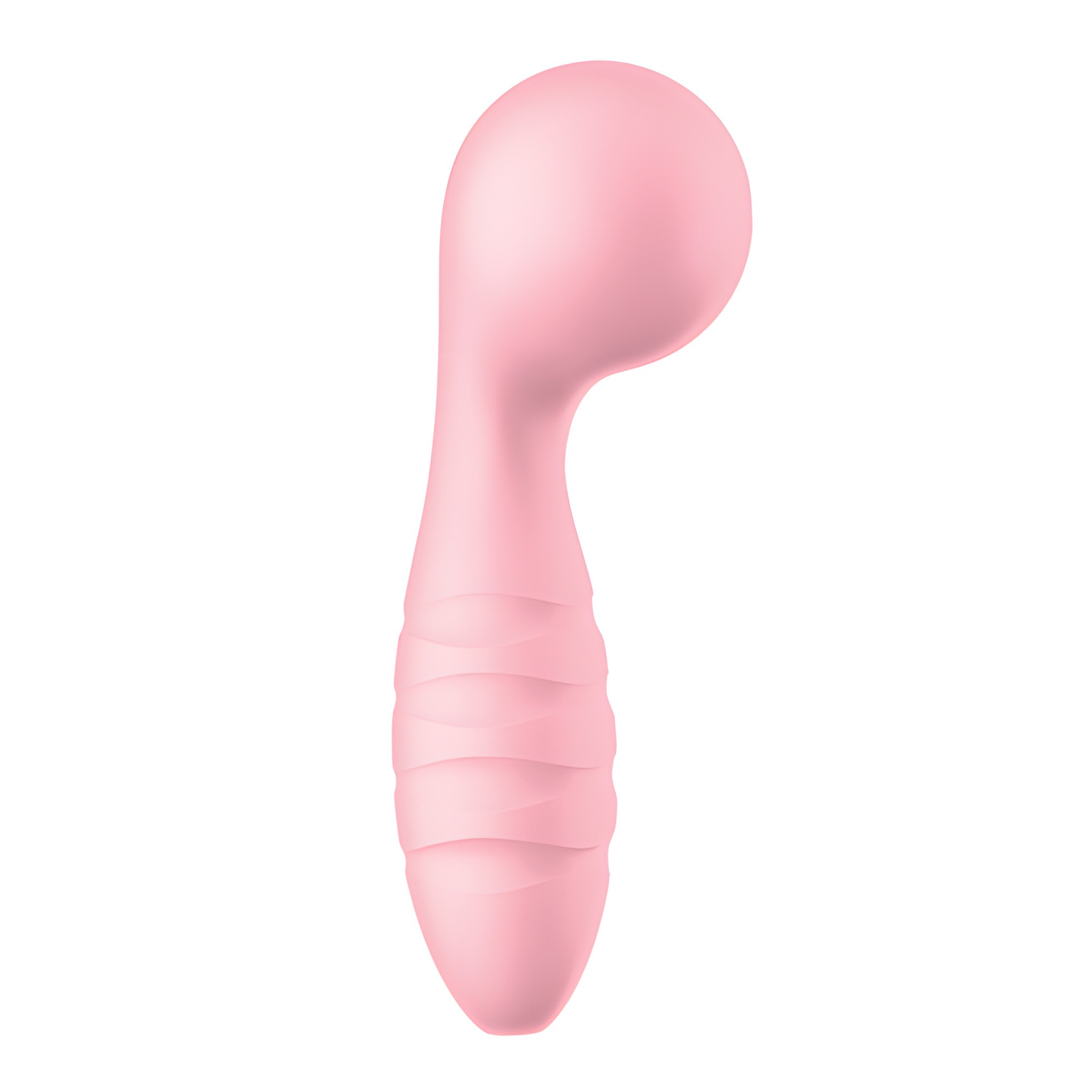 This sleek pink vibrator features a curved tip for targeted stimulation and five vibration functions to explore.