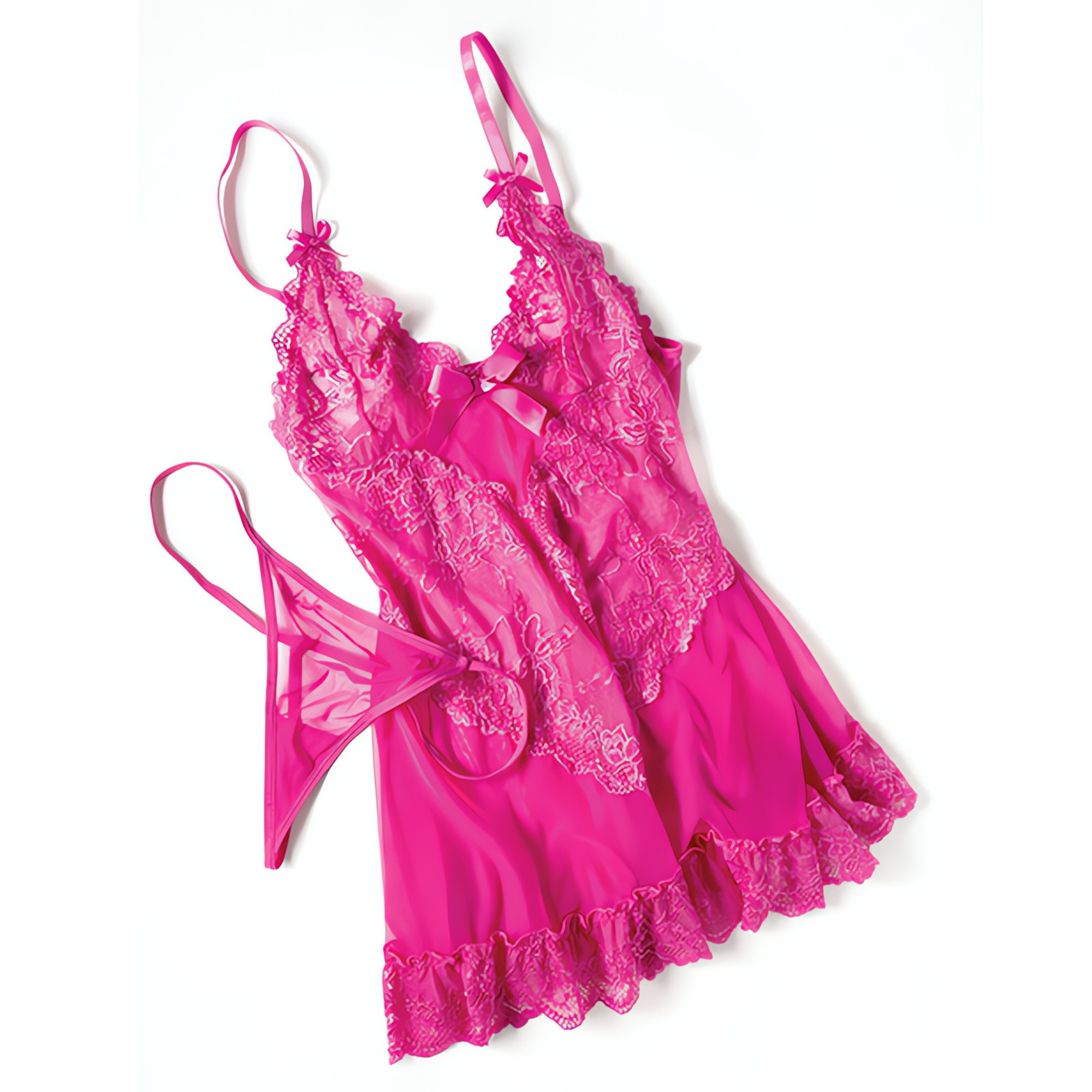 This lovely piece features playful bows and a matching G-string, making it a delightful addition to your lingerie collection.