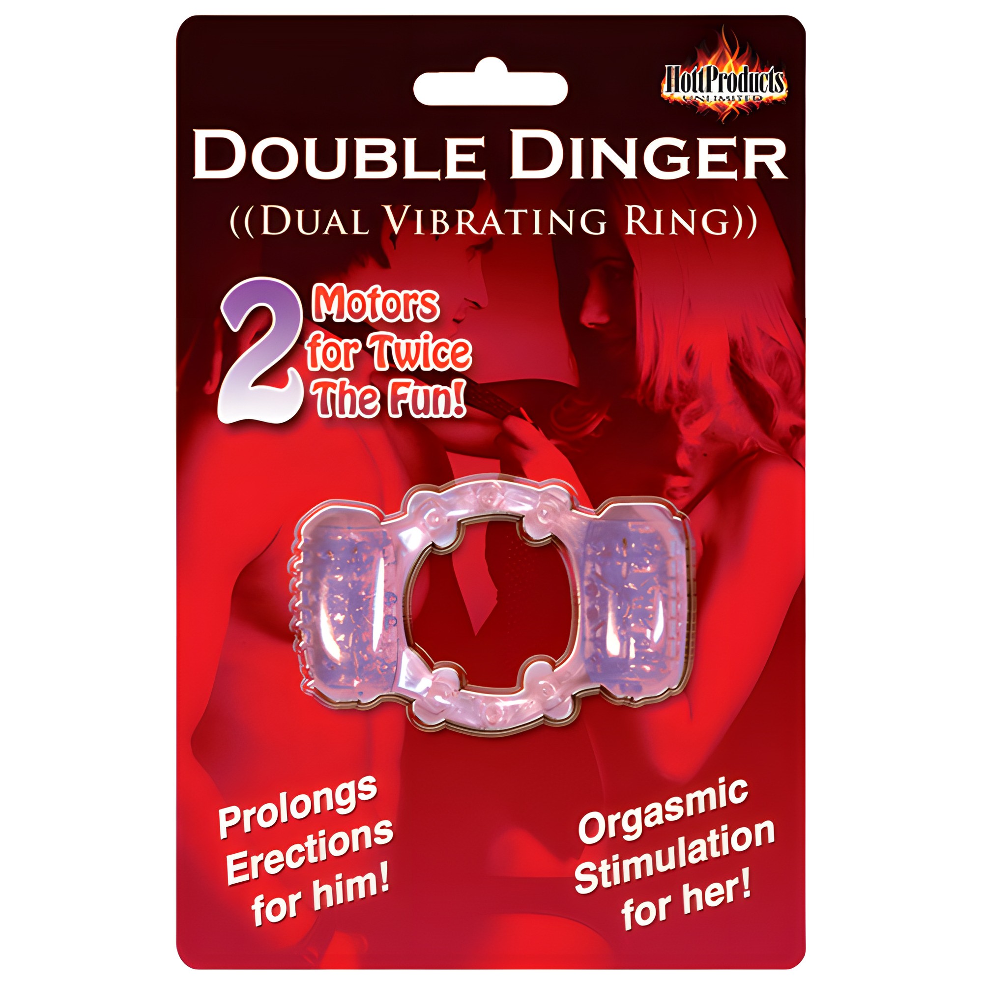 ¡Doble diversión con el Humm Dinger Double Dinger! Hecho de gel elástico, este potenciador de erección se ajusta cómodamente alrededor de la base del pene, estimulando tanto los testículos como el clítoris con dos balas extraíbles.