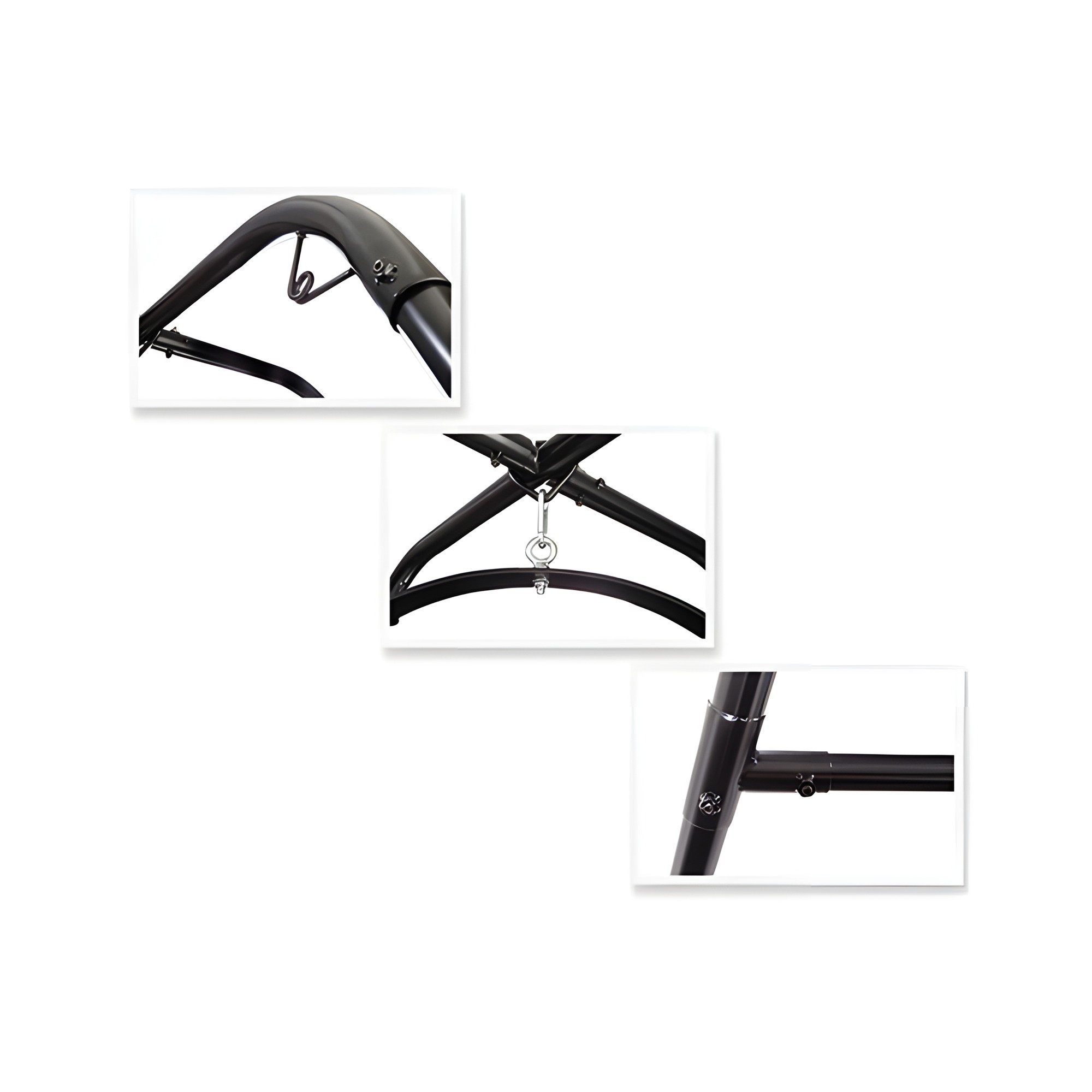 Este robusto soporte soporta hasta 400 lbs, permitiéndote explorar posiciones emocionantes sin necesidad de montajes en el techo.